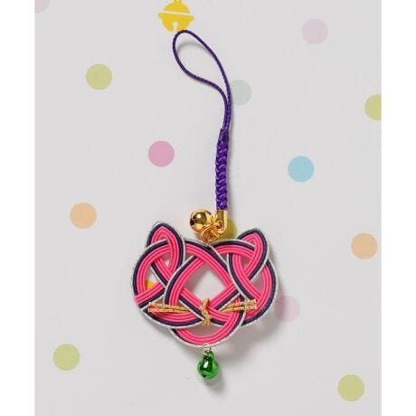 [型番:7PZZ5303-2025]猫の顔を縁起の良い水引で表現したストラップ。首輪をイメージした鈴がアクセント。それぞれの色に願いを込めて、お守りとして身に付けたり、贈り物としてもおすすめ。