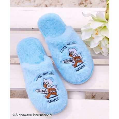 [型番:42AP5301-2025]【Kahiko×Aloha Mapua】サーフィンとファッションを愛する365日ハワイを感じられるキャラクター、ALOHA MAPUA(アロハマプア)のファースリッパ。履き心地の良いファー素材は、家の中で過ごす時間を少し豊かにしてくれます。