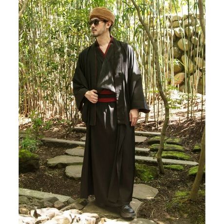 [型番:7CQ-5315-2025]着物に倣(なら)った形の着物風羽織。衿と袖口に上品なジャカード生地を使用。背中にはそれぞれ、松・竹・梅の家紋の刺しゅうが入っています。同じシリーズの帯付きパンツやトップスと合わせることで、より着物のような着こなしに。ゆったりとしたサイズ感で、性別問わず着用いただけます。サイドポケット付き。
