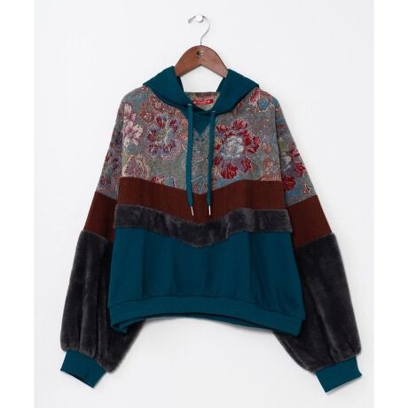 [型番:CAA-5309-2025]ゴブラン、裏毛、ファー、コーデュロイと4種の異なる生地を贅沢にパッチワークした、一枚でコーデの主役になる存在感のあるトップス。季節問わずに長く着用可能。シルクロードの「カーペット・ベルト」から着想を得た柄展開と、物によって異なる柄の出方をするゴブラン生地で、唯一無二の個性が光ります。ロングテール仕様なので脚長効果も期待でき、レイヤードスタイルにもおすすめです。