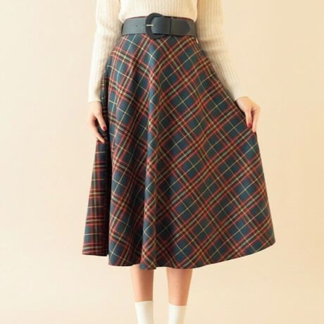 フレアーの美シルエットが目を惹くチェックスカート。