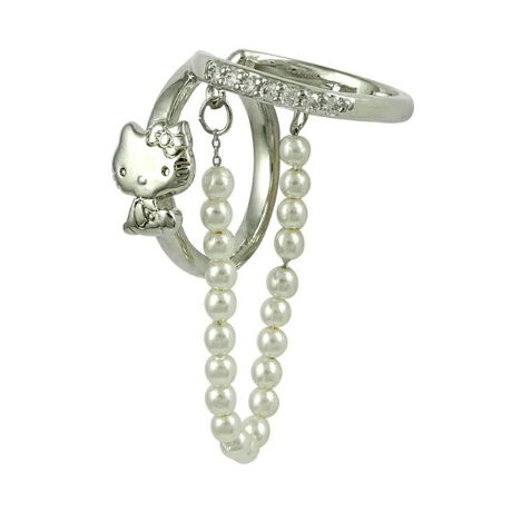 さっとつけられる手軽さが嬉しいハローキティのダブルイヤーカフです。重ねづけをしているような存在感のあるデザインでとっても華やか♪耳元でパールのチェーンが軽やかに揺れるのがポイントで存在感も抜群なアクセサリーです☆