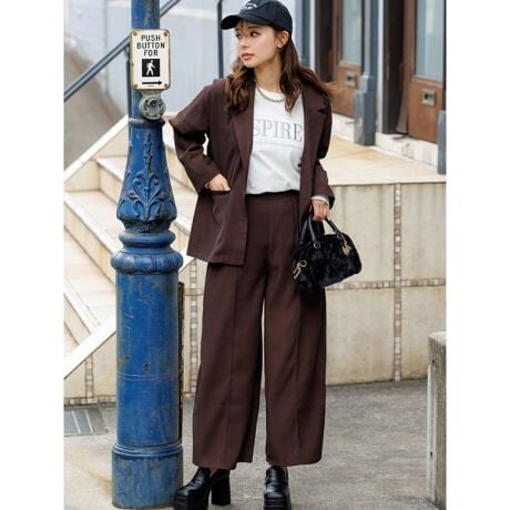 セットアップで着れば、オフィスやフォーマルなシーンにも対応。