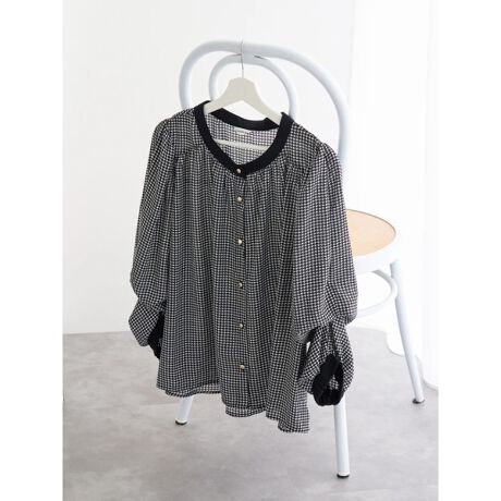 【袖2WAY】千鳥柄ノーカラーシャツ
