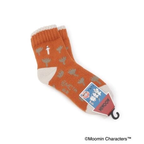 ◆【あったか】MOOMIN ホームソックス フワP ニョロ刺繍花