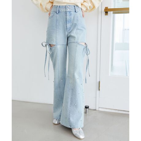 楽して美脚♪ビジューで魅せる旬顔デニムパンツ