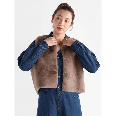 ふんわりとしたフェイクファーの肌触りが、シーズンムードを高めるベスト。