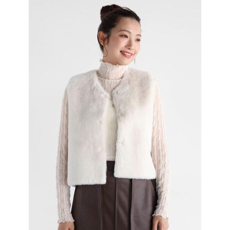 ふんわりとしたフェイクファーの肌触りが、シーズンムードを高めるベスト。