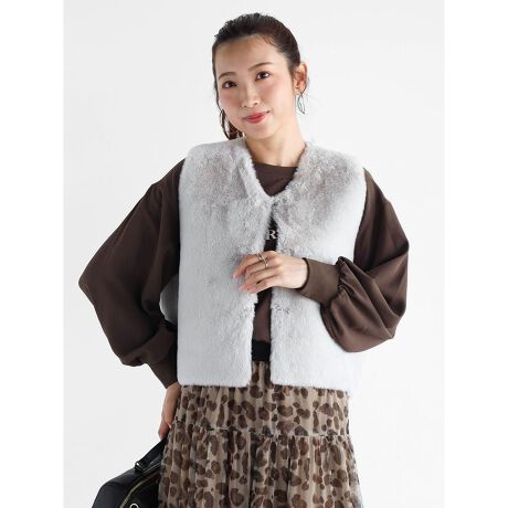 ふんわりとしたフェイクファーの肌触りが、シーズンムードを高めるベスト。