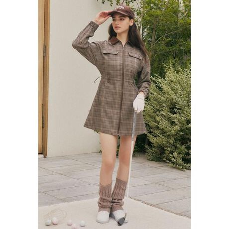【季節感のあるチェック柄が着映えするデザインワンピース】■ポイントカバーオールのようなワークデザインがポイントのワンピースで、RIENDAGOLFらしくグレンチェックを取り入れることで、上品かつトレンド感も演出しています。襟はコーデュロイ素材を使用することで、ファッション性にもこだわったデザイン。カジュアルさもありながら、腰位置が高く見えるシルエットにすることで、女性らしい雰囲気で着用できます。■ディテールウエスト部分にドローコードを施し、お好みでウエストを絞ることも可能です。ポケットはバスト部分に2つ、スカート部分の両サイドとヒップに2つ付けているので、ラウンド中の機能性にもこだわっています。Dカン付き。■スタイリング1枚で着用可能ですが、インナーはついていないので、インナーパンツの着用がおすすめです。気温が低い日は、インナーに薄手な長袖をレイヤードすることが可能です。■生地透け感:なし裏 地:なし伸縮性:ややあり光沢感:なし厚 さ:普通■商品のお気に入り登録お気に入りアイテムの再入荷・在庫1点などの通知を受け取ることができます。[注意事項]※画像の商品はサンプルです。実際の商品と仕様、加工が若干異なる場合があります。※画像の商品は光の照射や角度、お使いのモニター環境により、実物と色味が異なる場合がございます。※着用、お取り扱いの際は、アテンションタグをご確認ください。