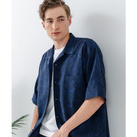 夏らしいリゾートプリント。麻混なので通気性・清涼感にも優れており、高温多湿の日本の夏にはピッタリな素材です。オープンカラーは衿元が開いてるので衣服内にこもった熱気が外に出ていくので、これも日本の気候に最適なスタイルのシャツです。