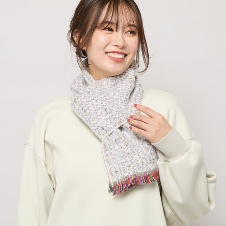 通す側の端はフリンジになっていて、マルチカラーのふさふさが可愛い。