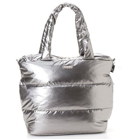 新しいお出かけスタイルです。フェザールーは両側にルーポケット付きなので、両手を入れれば手もあたたか。持ち手は肩がけOKの長さ、