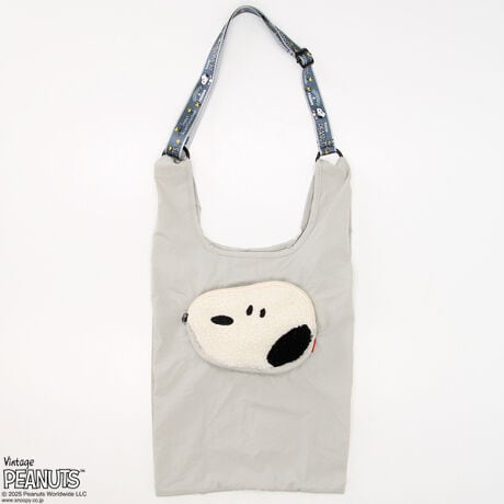 [型番:8458]ルートートのIP.RS.Peanuts-0P【収納コンパクトエコバッグ】スヌーピーフェイスデザインのポケットがポイントのショッパーバッグ。ポケットをひっくり返しながら本体を収納すると、おすましフェイスから変身!2つの表情が楽しめるパッカブルショッパーです。