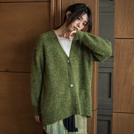 ふんわりソフトな質感に惹きつけられる、Vネック・ニットカーディガン。