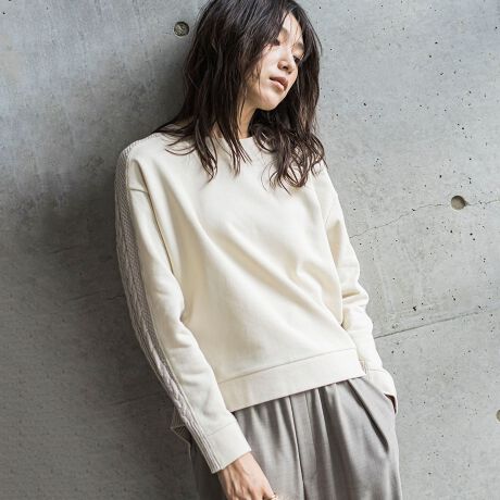 裏毛とニット、異なる素材を前後でドッキングさせたプルオーバー。