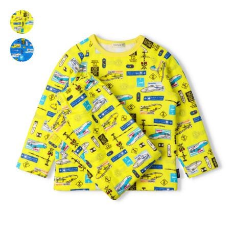 ネットショップと専門店、セレクトショップなど限定のアイテム!直営店では直営オンラインショップ「こどもの森e-shop」各店のみでの販売になります。【直営実店舗での販売はありません。】男の子が大好きな電車!毎シーズン大人気のJRコラボシリーズです!JR東日本商品化許諾済み商品です。人気の新幹線のこまち、はやぶさの車体の総柄プリントのパジャマ・ルームウェアです。柔らかくて肌触りの良いキルト素材を使用。キルト素材は空気をたっぷり含むため、寒い夜でもお子様をしっかりと暖かく包み込みます。ギフトやプレゼントにもオススメなアイテム。90cmのみ着替えのしやすい肩ボタン、お腹が出ない脇ボタン仕様です。【アイテム】雑貨 カジュアル お洒落 オシャレ かっこいい かわいい 可愛い 普段着 デイリーウェア お出かけ 子ども こども 男児 男の子 ボーイズ キッズ ベビーサイズ トドラーサイズ ルームウェア 寝巻 幼稚園 保育園 小学校 通園 通学 小学生 遠足 旅行 2025年秋冬物新作 丸高衣料 小物 ブルー 青色 イエロー 黄色 キッズフォーレ 電車 新幹線 ハングリーハート トレイン 鉄道 子鉄 車両 電車 電鉄