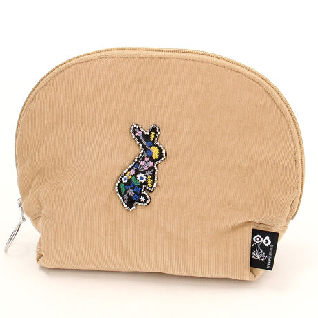 ウサギモチーフ付きコーデュロイラウンドポーチ