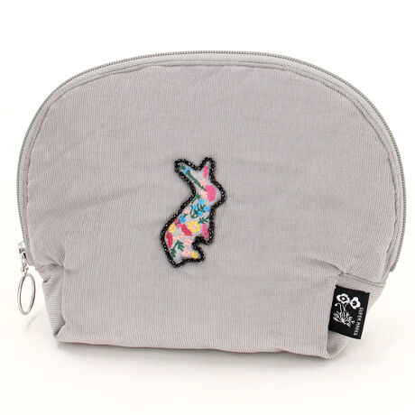 ウサギモチーフ付きコーデュロイラウンドポーチ
