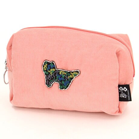ネコモチーフ付きコーデュロイスクエアポーチ