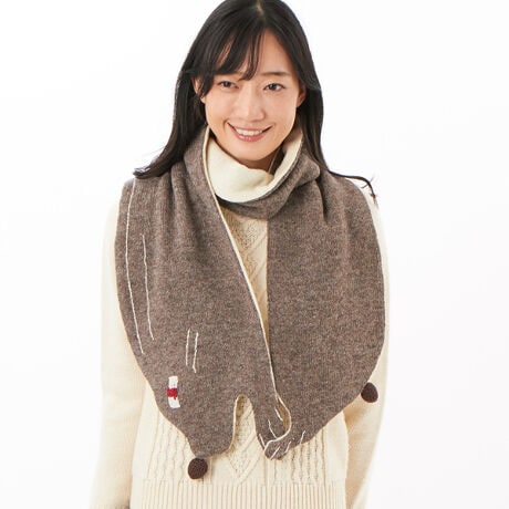 [型番:34040154]ウサギのシルエットをそのまま落とし込んだウールのマフラー。鼻や目など、部分的に立体感を持たせて可愛らしいデザインに仕上げました。ウール混の軽い糸を使用しているので、保温性があり機能面もばっちりです。コーディネートのアクセントになってくれるアイテムです。