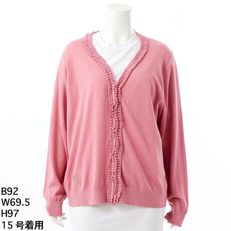 [15〜19号]フラワーワンポイント刺繍コットンアクリルフリルタックニットカーディガン