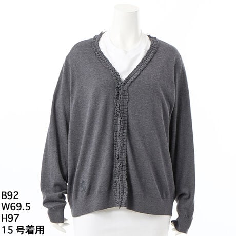 [15〜19号]フラワーワンポイント刺繍コットンアクリルフリルタックニットカーディガン