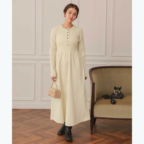 ・体型カバーも叶うニットワンピース・トレンド感のあるヘンリーネックデザイン・構築系のニット素材・1枚でお出かけにもデイリー使いにも◎[型番:AGXP4397]
