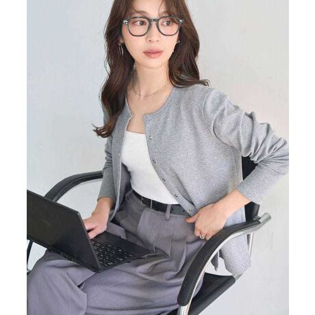 上品な丸首デザインにスナップボタンをあしらったリブカーデは、シンプルだからこそ着回しやすく、羽織るだけでこなれ感をプラスしてくれます。