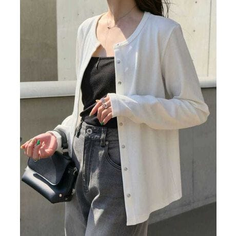 上品な丸首デザインにスナップボタンをあしらったリブカーデは、シンプルだからこそ着回しやすく、羽織るだけでこなれ感をプラスしてくれます。