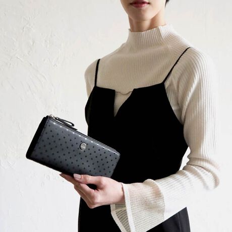 ニナ リッチのブランドコードに含まれるデザイン要素の一つである水玉模様を落とし込んだお財布シリーズを作成しました。