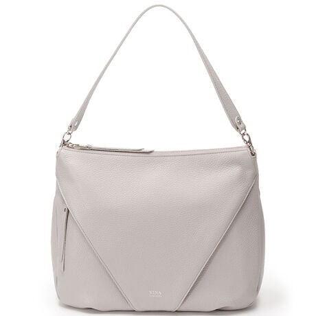 三角マチで丸みを持たせ、タックを入れることでふっくらとしたボリュームも出しています。