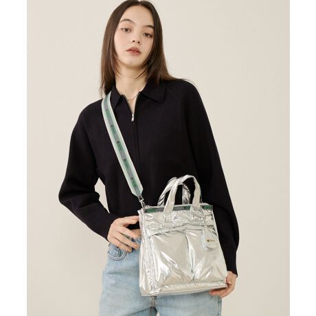 リップストップナイロン素材のブラック、サテン調生地で光沢感のあるカーキと、煌めくシルバーホイルの3色展開。