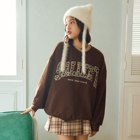 大胆にあしらったロゴのアップリケが目を引くスウェットです。
