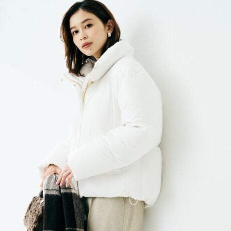 ショート丈のダウンコートは、スタンドネックの衿が首元も暖かく、防寒性だけではなく顔周りをすっきりと見せてくれます。
