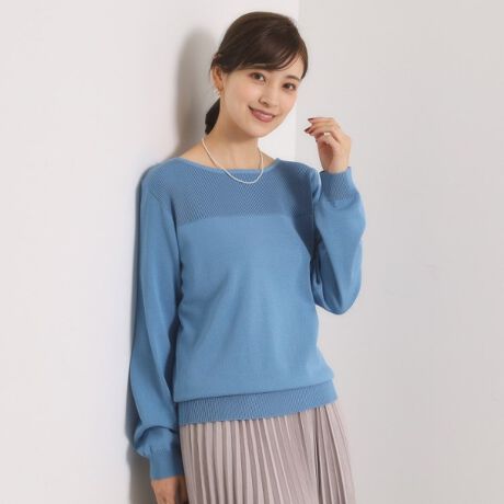 ボートネックがデコルテラインをすっきりと綺麗に見せてくれます。