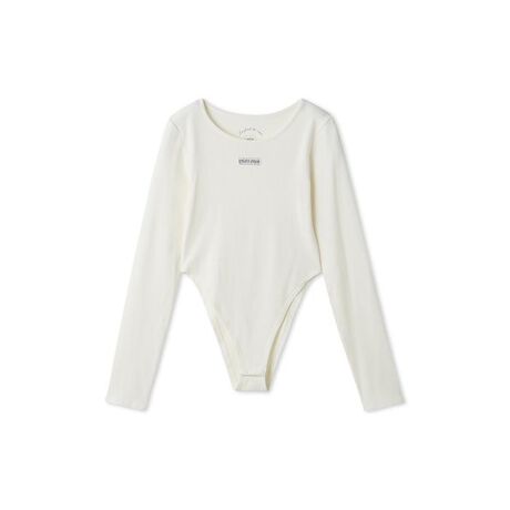 汗を吸って温かさを保つHOT FABRICの柔らかなリブカットソーを使用した、トレンド感たっぷりのルームウェアシリーズ。ワイドなボトムに合わせて今っぽい着こなしを楽しみたいレオタードロングTシャツです。身体のラインが出るコンパクトなシルエットで、1枚でもインナーとしても着用いただけるデザイン。胸元にワンポイントでワッペンのようなロゴを付け、シンプルに仕上げました。色はクリーンな印象のオフホワイトとグレーをご用意。同時期に展開する裏毛ロングパンツや、お好みのニットロングパンツに合わせてお楽しみください。