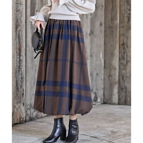 秋冬コーデを盛り上げるチェック柄のスカート。