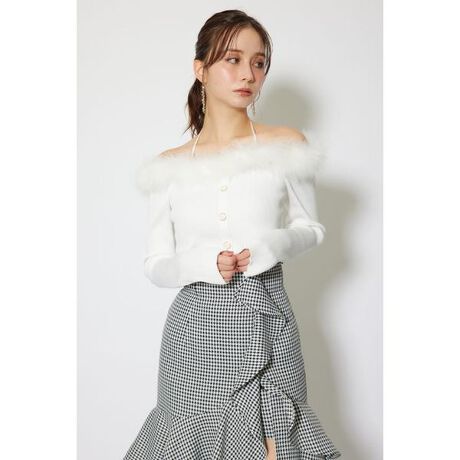 【ふわふわと上品なフェザーファーデザインがトレンドライクなオフショルニットプルオーバー】■ポイントニットとリアルフェザーファー、異素材のコンビネーションがモード感とフェミニン感を高めるニットプルオーバーです。エアリー感のあるふわふわとしたリアルフェザーファーが、肩に程よくのって華やかで愛らしいムードを高めてくれます。■ディテールフワフワしたリアルフェザーファーに対して身頃はタイトなシルエットなので、フレアスカートなどボリュームのあるボトムとも相性抜群です。1点投入でレディな着こなしを叶えてくれます。■スタイリングコンパクトなサイズ感なので、デニムはもちろんボリューム感のあるアイテムもお勧め。■生地透け感:なし裏 地:なし伸縮性:あり光沢感:なし厚 さ:中肉■商品のお気に入り登録お気に入りアイテムの再入荷・在庫1点などの通知を受け取ることができます。[注意事項]※画像の商品はサンプルです。実際の商品と仕様、加工が若干異なる場合があります。※画像の商品は光の照射や角度、お使いのモニター環境により、実物と色味が異なる場合がございます。※着用、お取り扱いの際は、アテンションタグをご確認ください。