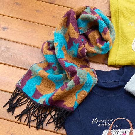 フランス製らしいカラフルな色使いが印象的なマフラー。