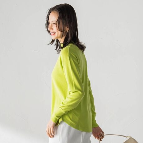 ソフトで毛羽立ちの少ない最高級ウール原料を用い、しなやかな肌触りが心地よいニットです。