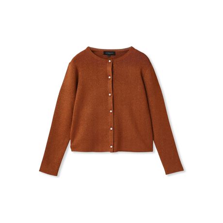 セットインスリーブでコンパクトに仕上げた、すっきりと体に沿うシルエットのカーディガン。