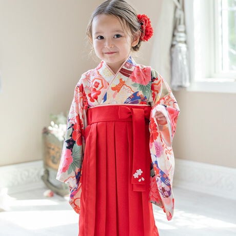 袴のリボンは縫い付け済みでほどけません。結ぶ手間も着崩れもないので、元気いっぱい動いてもOK!