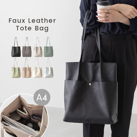 ほどよい“くた感”が可愛い、やわらかな合皮のトートバッグ。