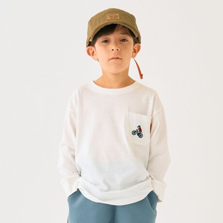 アウトドアテイストのモチーフが刺しゅうされた長袖Tシャツです。