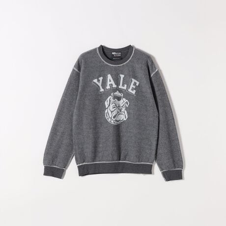 可愛らしいブルドッグプリントがアクセントになった、起毛感のあるクルーネックスウェット。