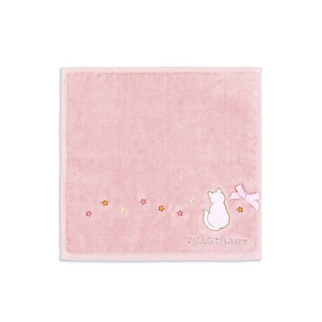 可愛らしいパステルカラーに子猫と星の刺繍をあしらったキュートなデザインのタオルハンカチ。