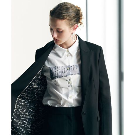 ■素材コットンの滑らかで上品な光沢感のあるサテンのシャツ素材です。美しいフォルムが表現できる絶妙な肉感で、加工により滑らかさとしなやかなドレープ性を兼ね備えています。通常のコットンに比べシワになりにくいのも特徴です。