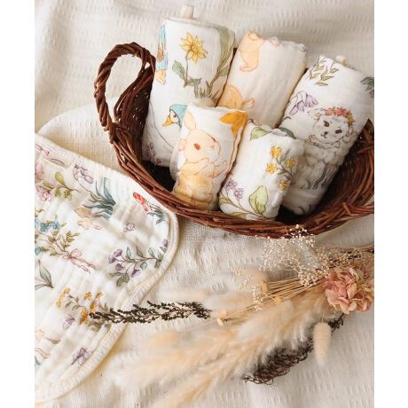 生地には竹繊維を30%使用した6重ガーゼ素材を採用し、デリケートな赤ちゃんの肌をやさしく包み込みます。