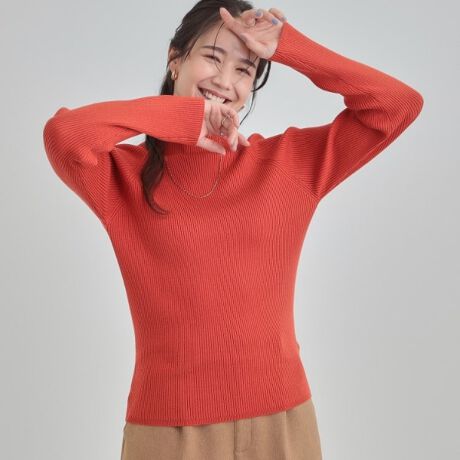 程よい伸縮性が心地よい、柔らかな肌触りのベーシックなリブハイネック。